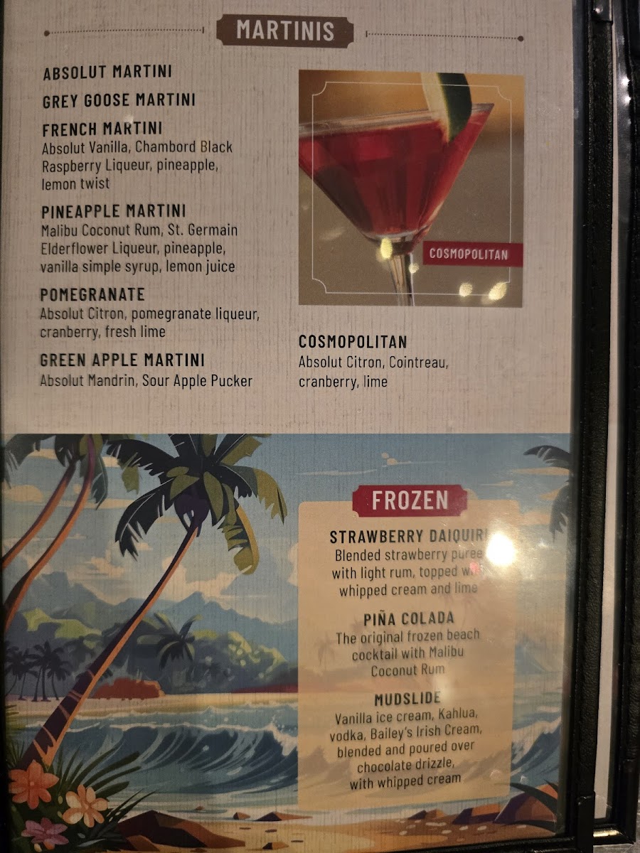 Three jumbo shrimp. With cocktail sauce. Served with choice of steak fries or mandarin oranges.